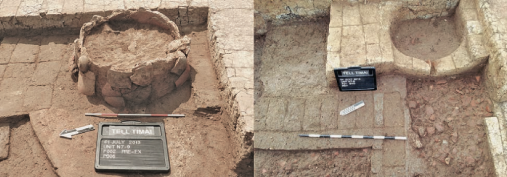 On the left , the oven in Room IV; on the right, the mud-brick platform after removal of the oven. (Courtesy of the University of Hawaii Tell Timai Project)